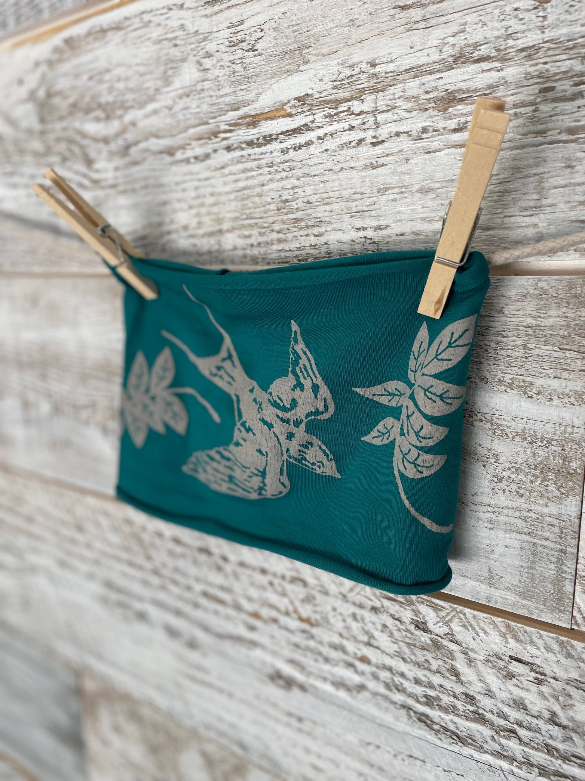 Each headband is handprinted in Maine using an Eco-Friendly water based ink.