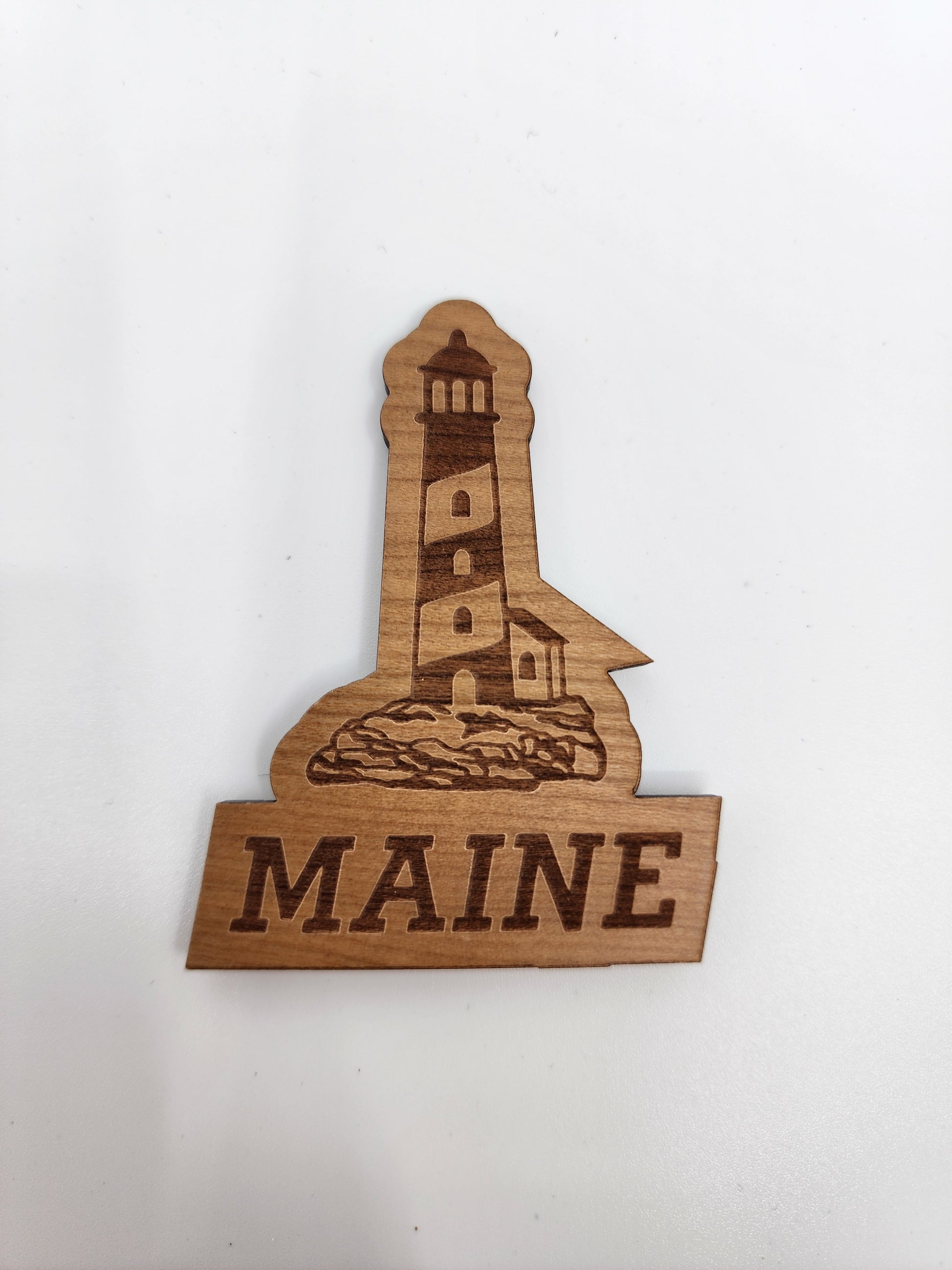 Wooden magnet Engraved with a Maine lighthouse