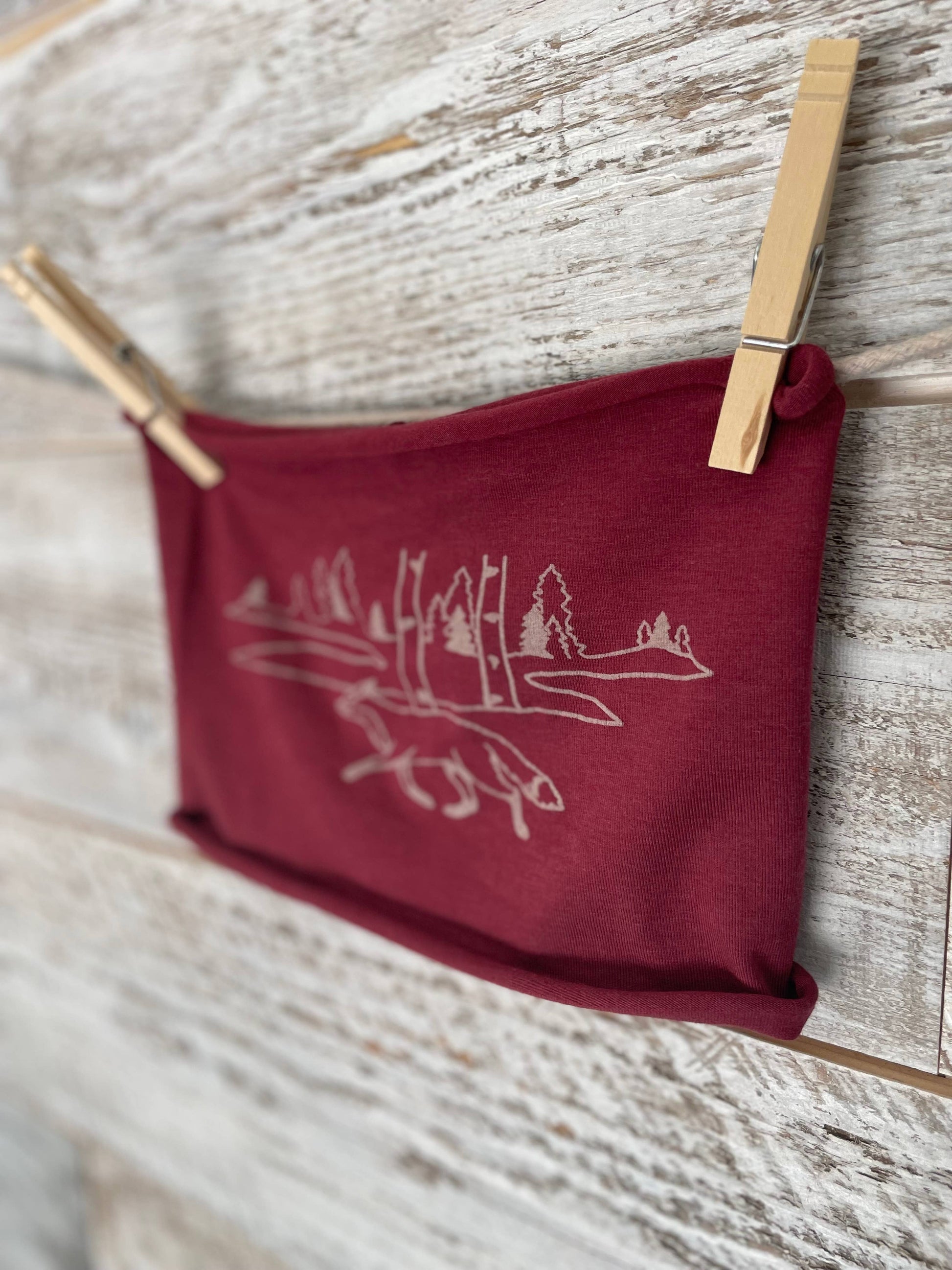 Each headband is handprinted in Maine using an Eco-Friendly water based ink.