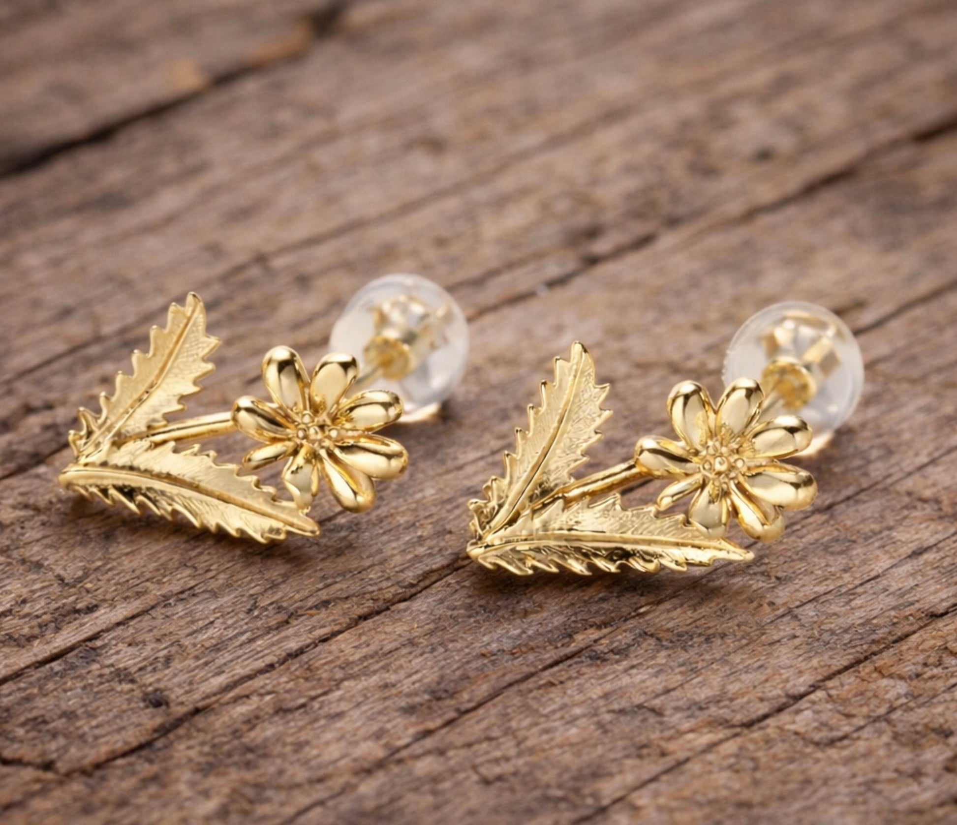 Each pair features a tiny wildflower design paired with soft leafy details, creating an elegant yet natural look that feels effortless and timeless. Lightweight and comfortable, they’re perfect for daily wear or layering with other earrings.